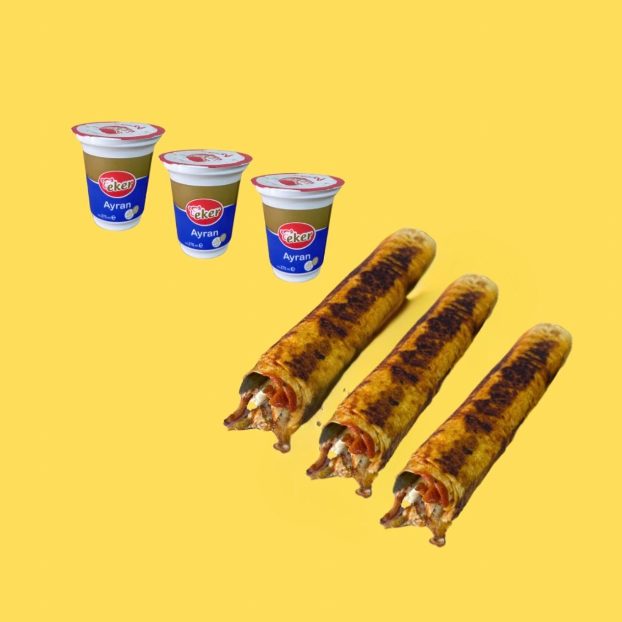 3 Adet Antakya Dürüm + 3 Adet Eker Ayran (27 cl.)
